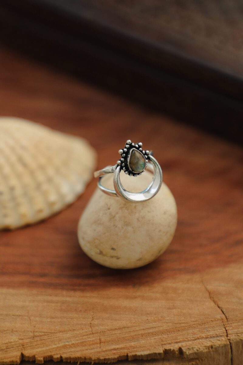 Labradorite is often associated with intuition, transformation, and protection, making this ring both a beautiful accessory and a meaningful piece of spiritual jewelry.